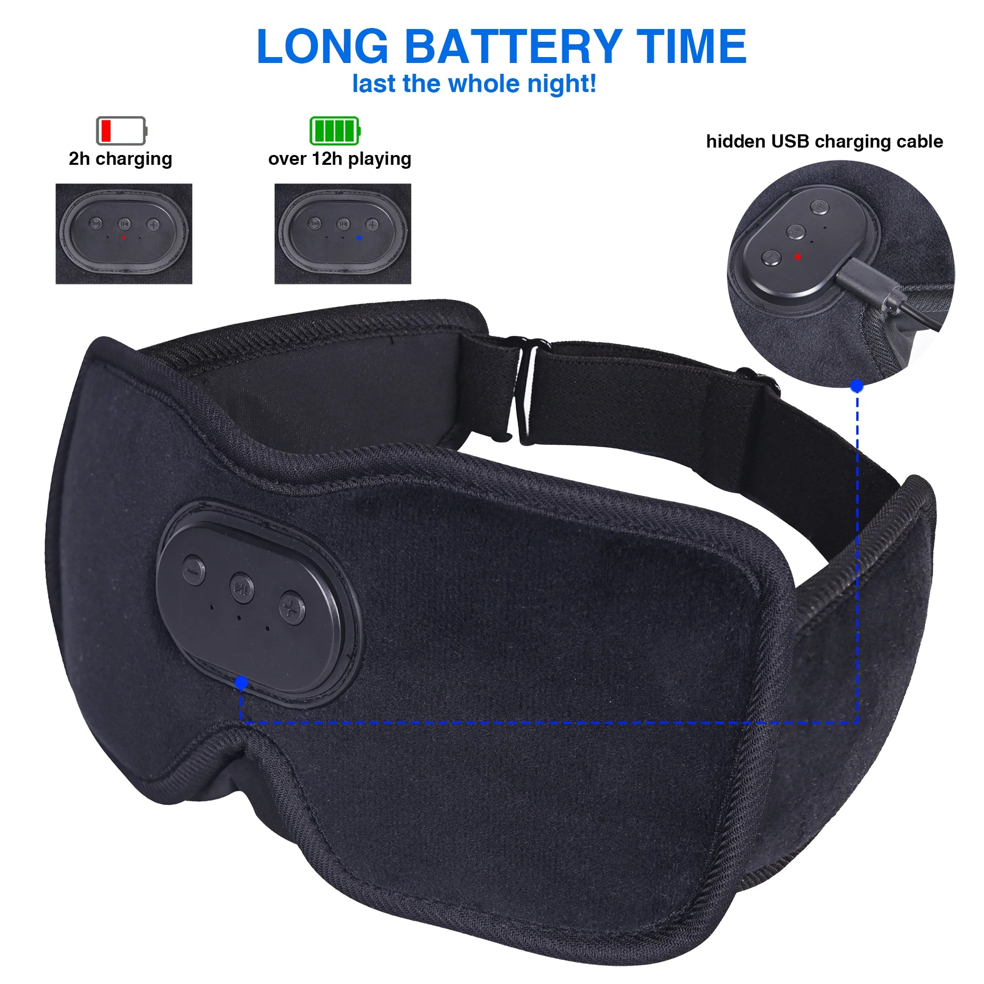 Washable Adjustable – 3d eye sleep mask can be washed after taking away the bluetooth devices and speakers, the speaker position can be adjusted to be closer to the ear for clearer hearing. Wireless bluetooth sleep headphones for women men is adjustable, you can charge to fit your head.